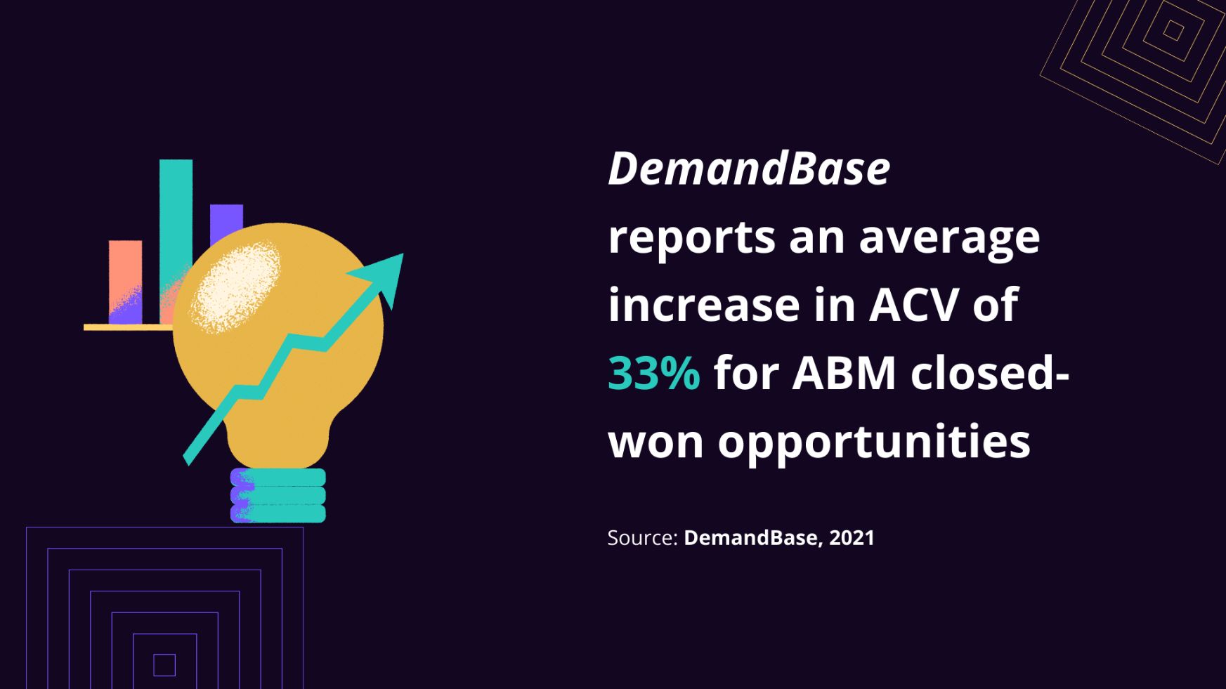 - DemandBase reports an average increase in ACV of 33% for ABM closed-won opportunities (DemandBase, 2021)