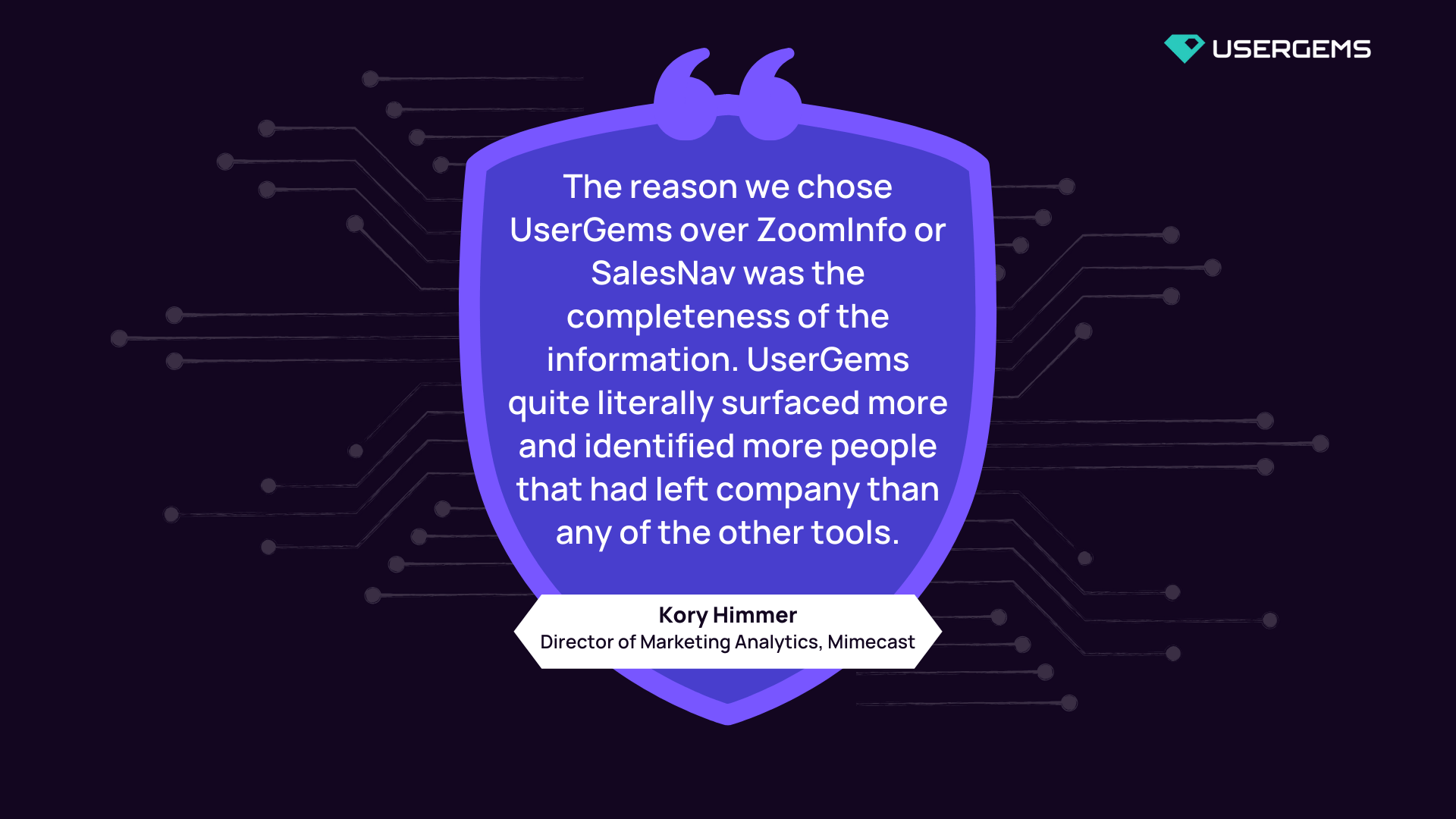 In comparison with LinkedIn Sales Navigator and ZoomInfo, UserGems provides more relevant job-change leads. Take it from our customer, Mimecast: