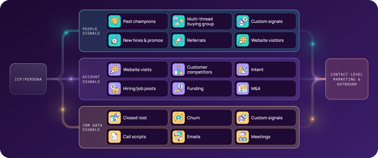 You'll hear things like: "I always go after companies where I know someone." Or "I pay attention when a champion moves." Or "I watch for new leadership because they actually have budget." That's signal intelligence. It just lives in people's heads instead of your CRM.