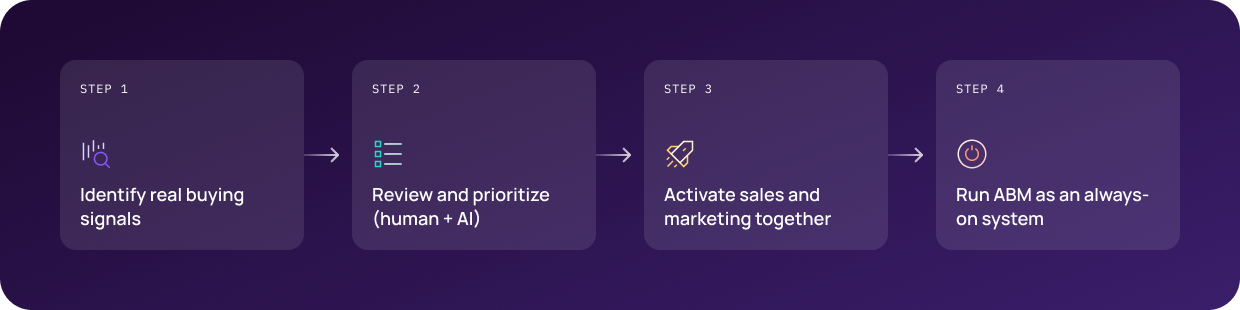 If you've run ABM programs before, you already know that more signals don't automatically mean better results. Most vendors pitch volume, more data sources, intent feeds, and integrations. But in practice, stacking signals without a clear way to act on them just gives your team more work to sort through.