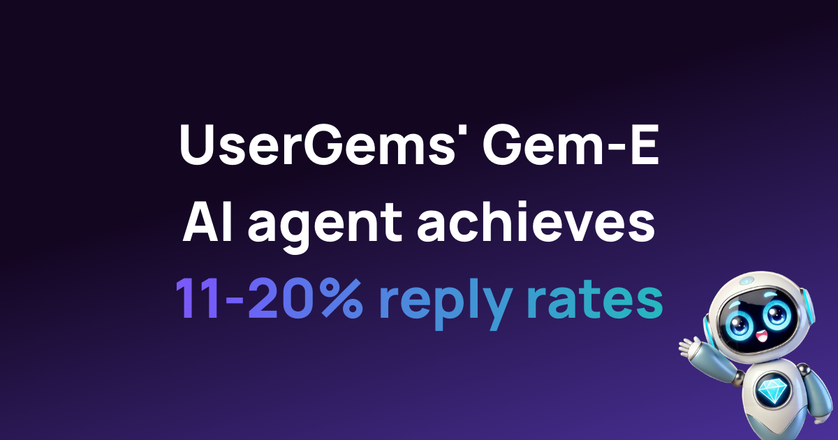 [San Francisco, CA] — UserGems' Gem-E AI agent is delivering 11-20% reply rates for sales teams through multi-signal email sequencing, intelligent content matching, and conversational editing, outperforming the industry average of 1-2% by 10x.