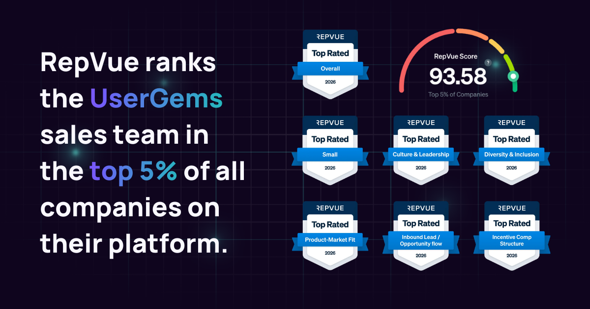 The awards reflect UserGems' commitment to creating an environment where sales professionals can build long-term careers, not just hit quota. RepVue measures organizations on factors including culture, leadership, professional development, compensation, diversity, and overall employee sentiment.