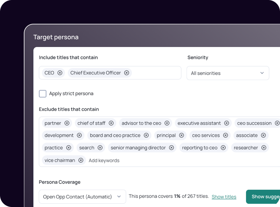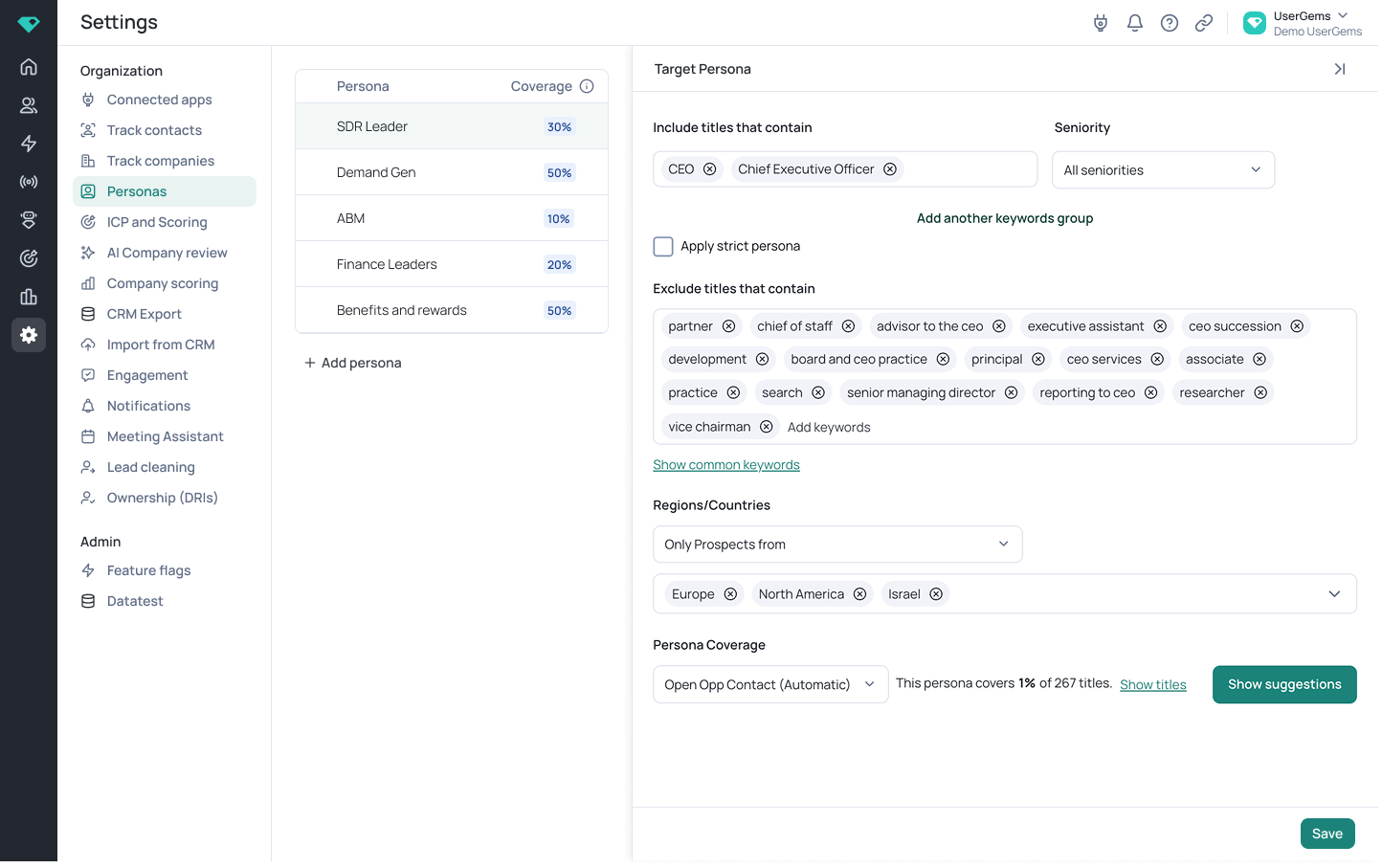 Based on your opportunities and customers, UserGems AI identifies personas, ICP criteria, and value prop.