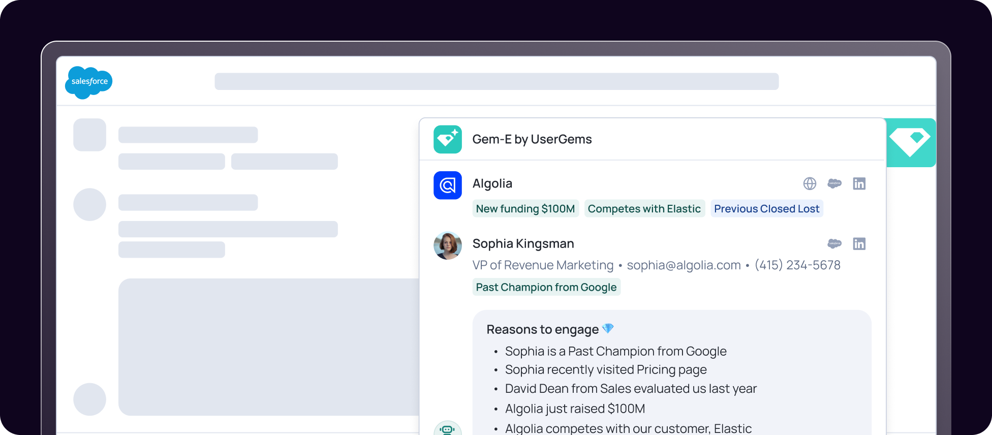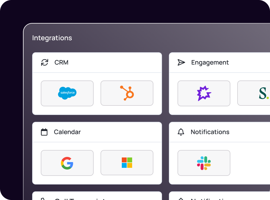 No new tools for reps to learn. Bring AI assistance into your reps' browsers - Reps get insights while working in CRM, sales engagement tools, or during calls.