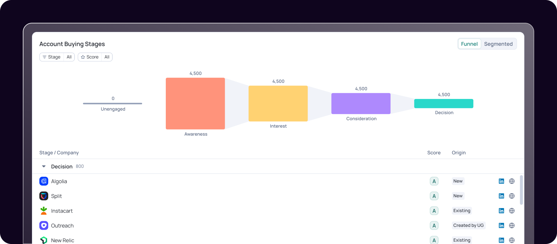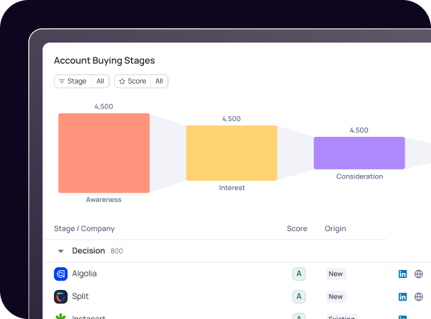 Teams can see exactly why an account is in a given stage, which signals moved it there, and how close it is to becoming sales-ready.