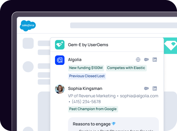 UserGems automatically creates and enriches accounts and contacts aligned to your ICP and personas, then syncs them directly to your CRM.