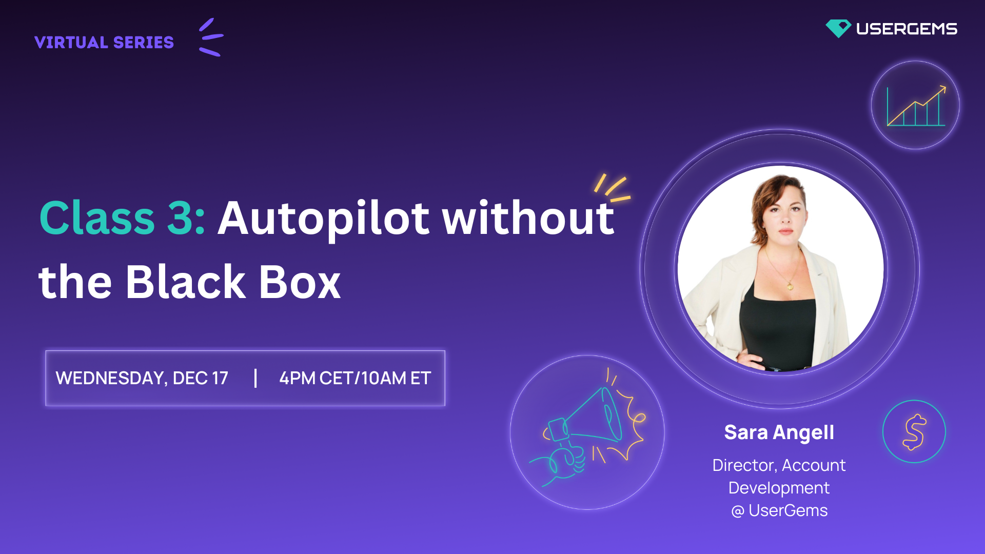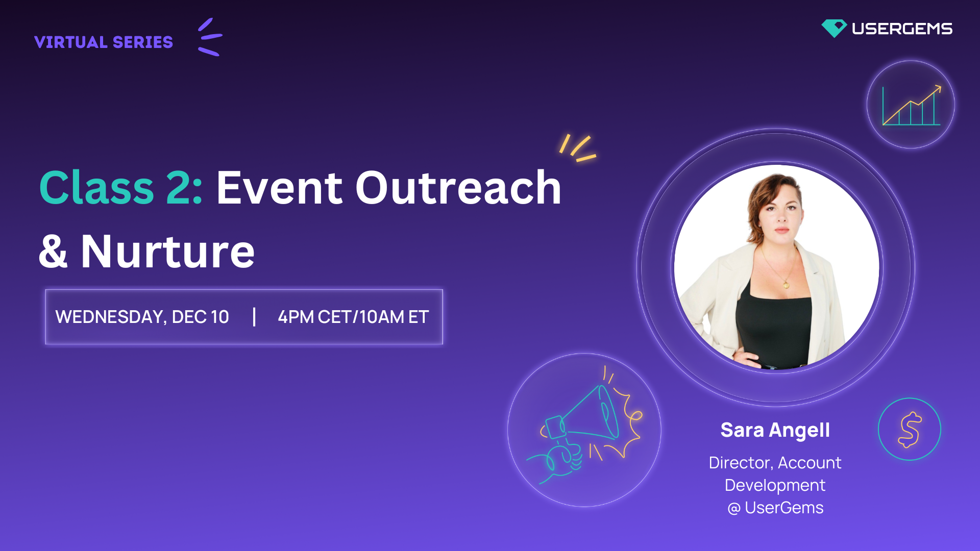 60% of UserGems pipeline comes from outbound. Join Sara Angell, Director of Account Development at UserGems, for a live 3-part classroom series. Each 45-minute live class includes real examples, how we build it in UserGems, and how we train the reps to work alongside with AI Agent.